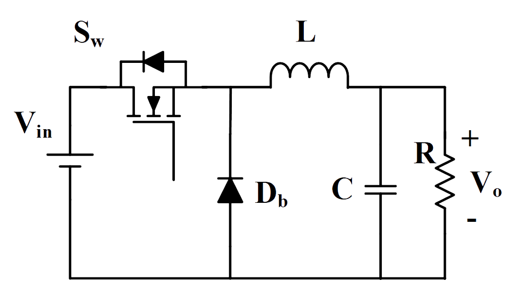 4. A buck converter delivering an output power of 300 W has an efficiency of 94%. Calculate the total losses (PLoss) of the converter.