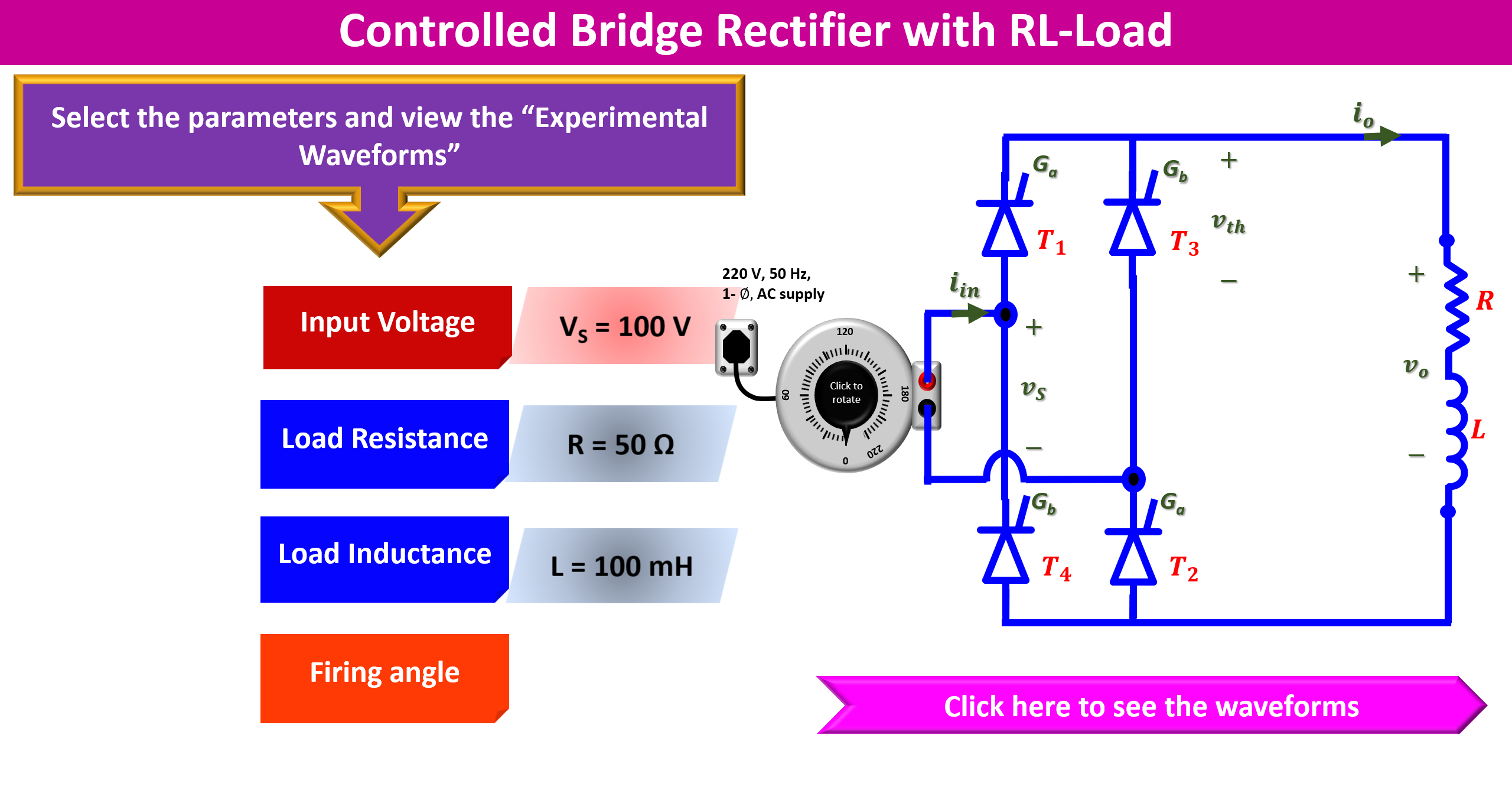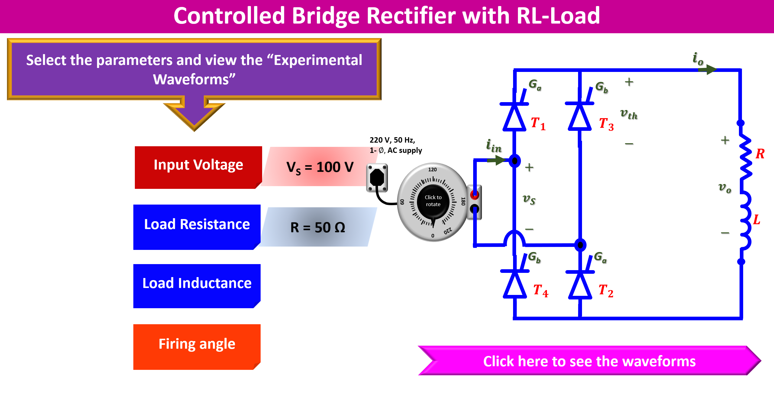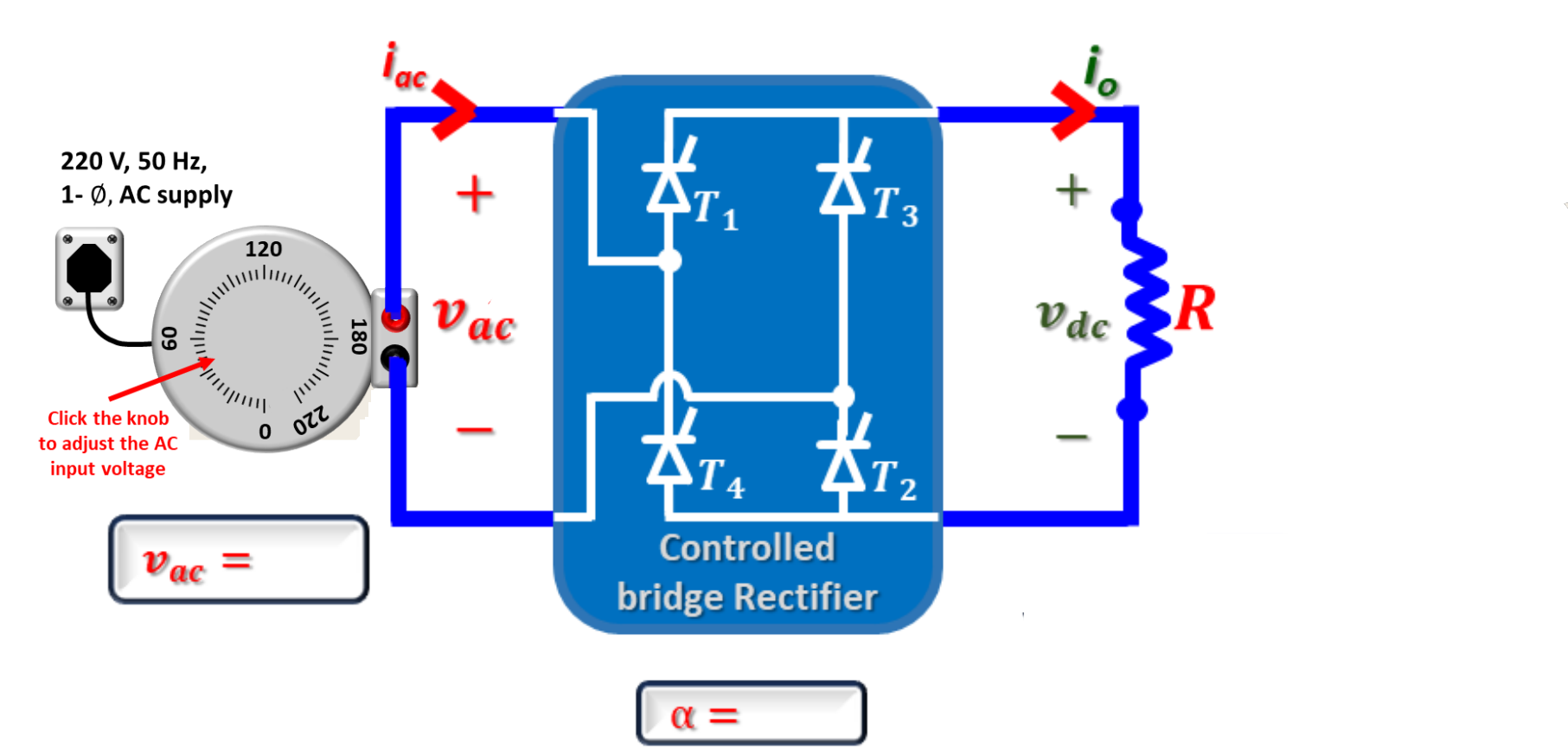 | S.No. | Vac(V) | Firing angle (Ξ±) | Vdc(V) | Idc(A) | Vrms(V) | Irms(A) | Power(Po) (W) | Apparent Power (S) (VA) | PF |