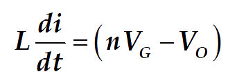 Applying ‘volt-sec’ balance across the inductor (eqn. 1 and 2)