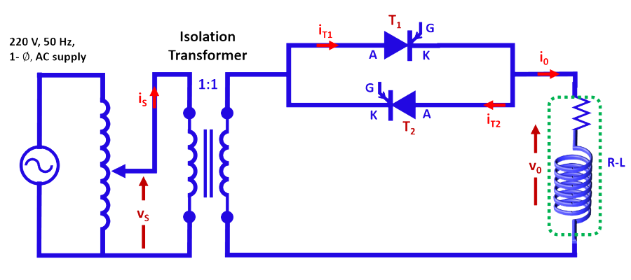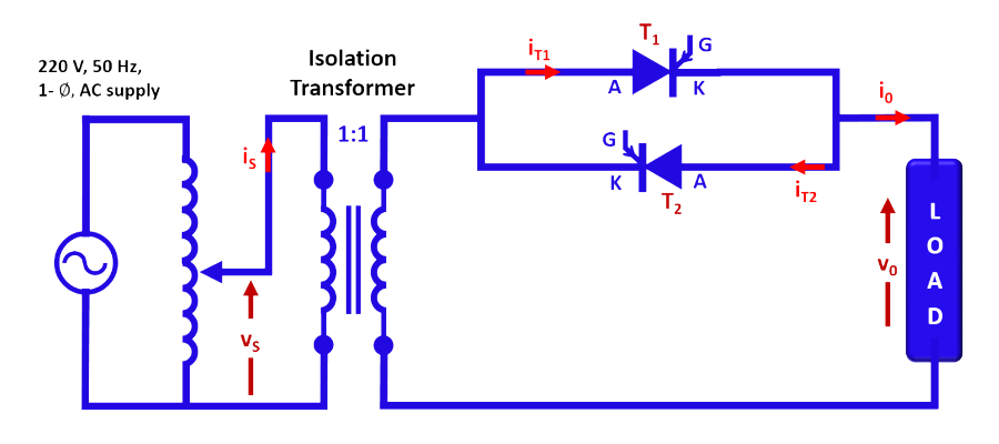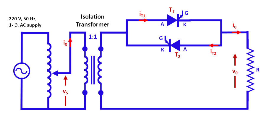 Fig. 2a. Circuit configuration of AC voltage controller with R-load.