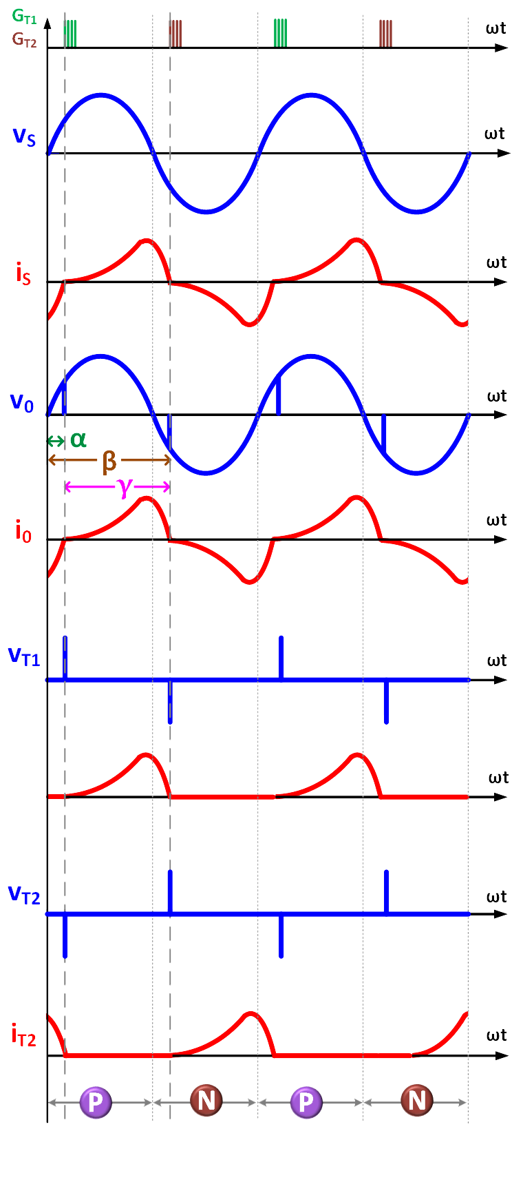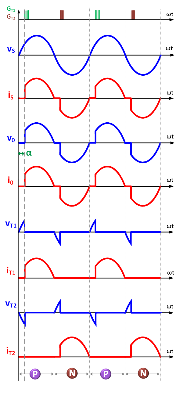 Fig. 3. Typical waveforms with R-load (α<90°).