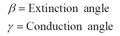 For the given firing angle and R-L load parameters, the extinction angle is given by