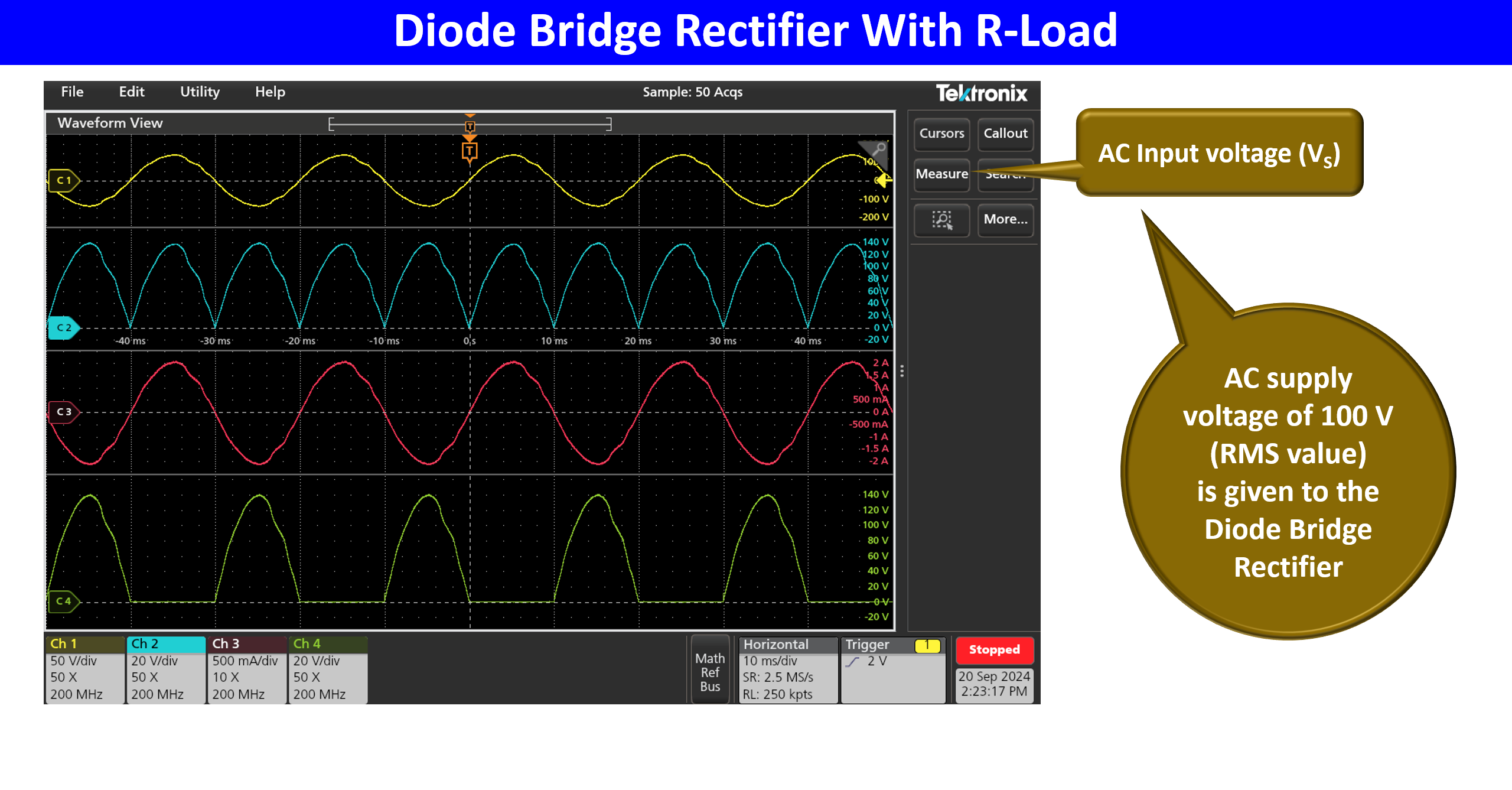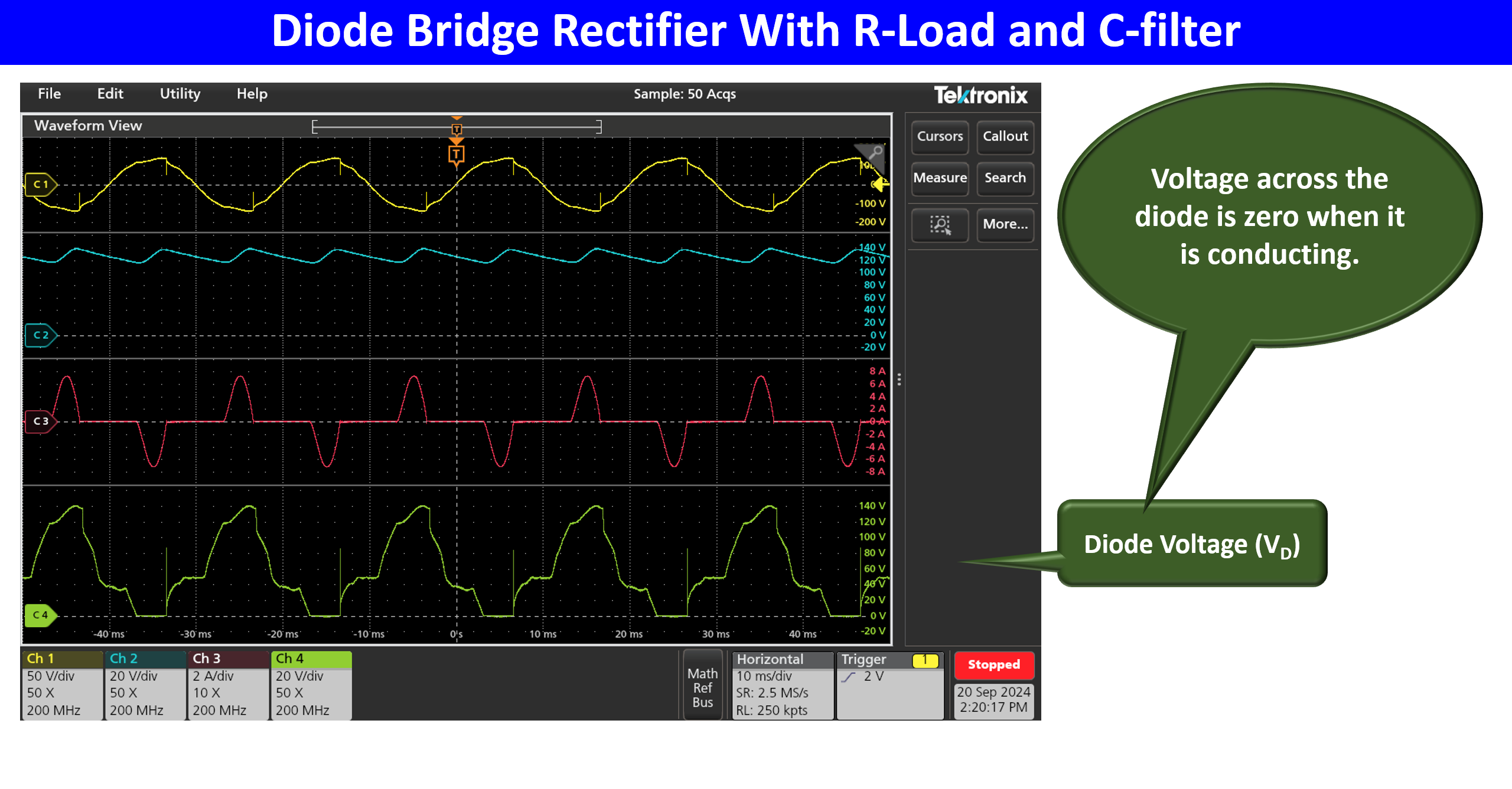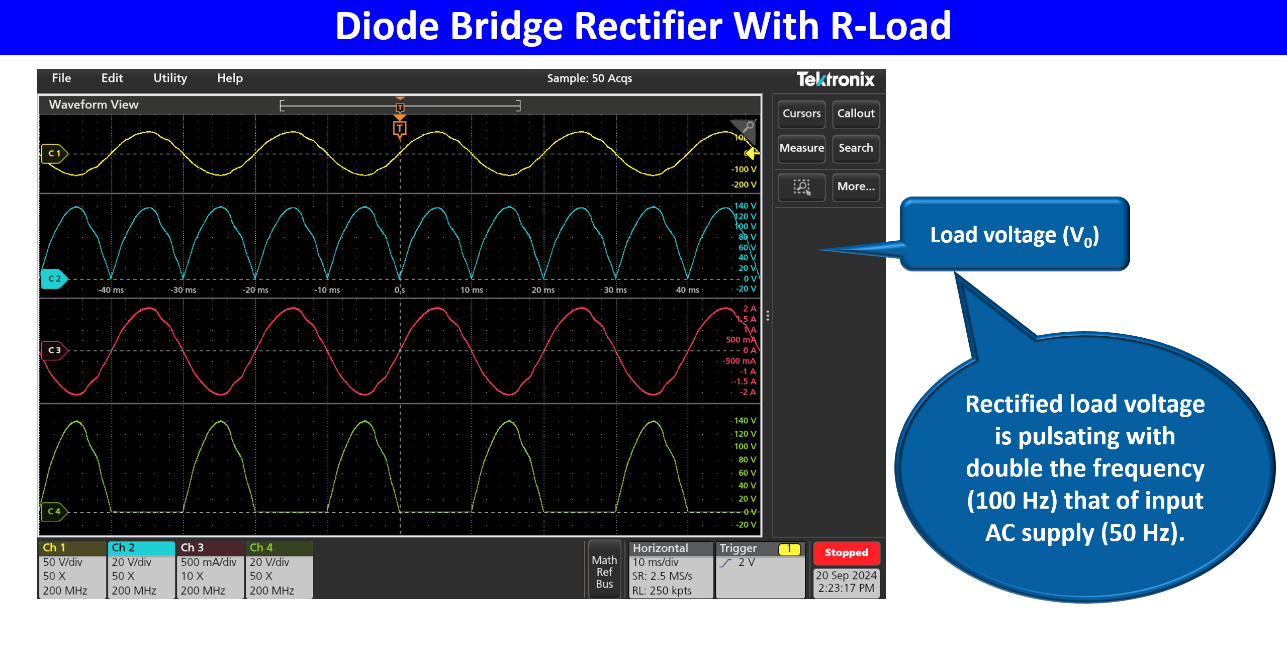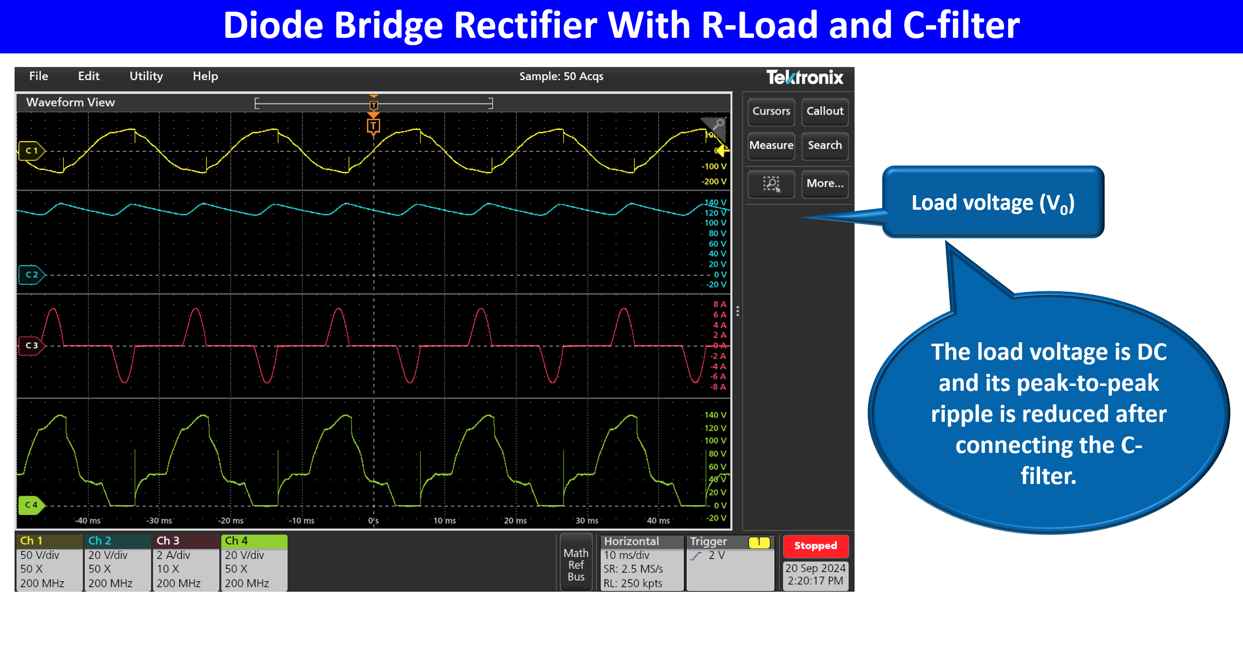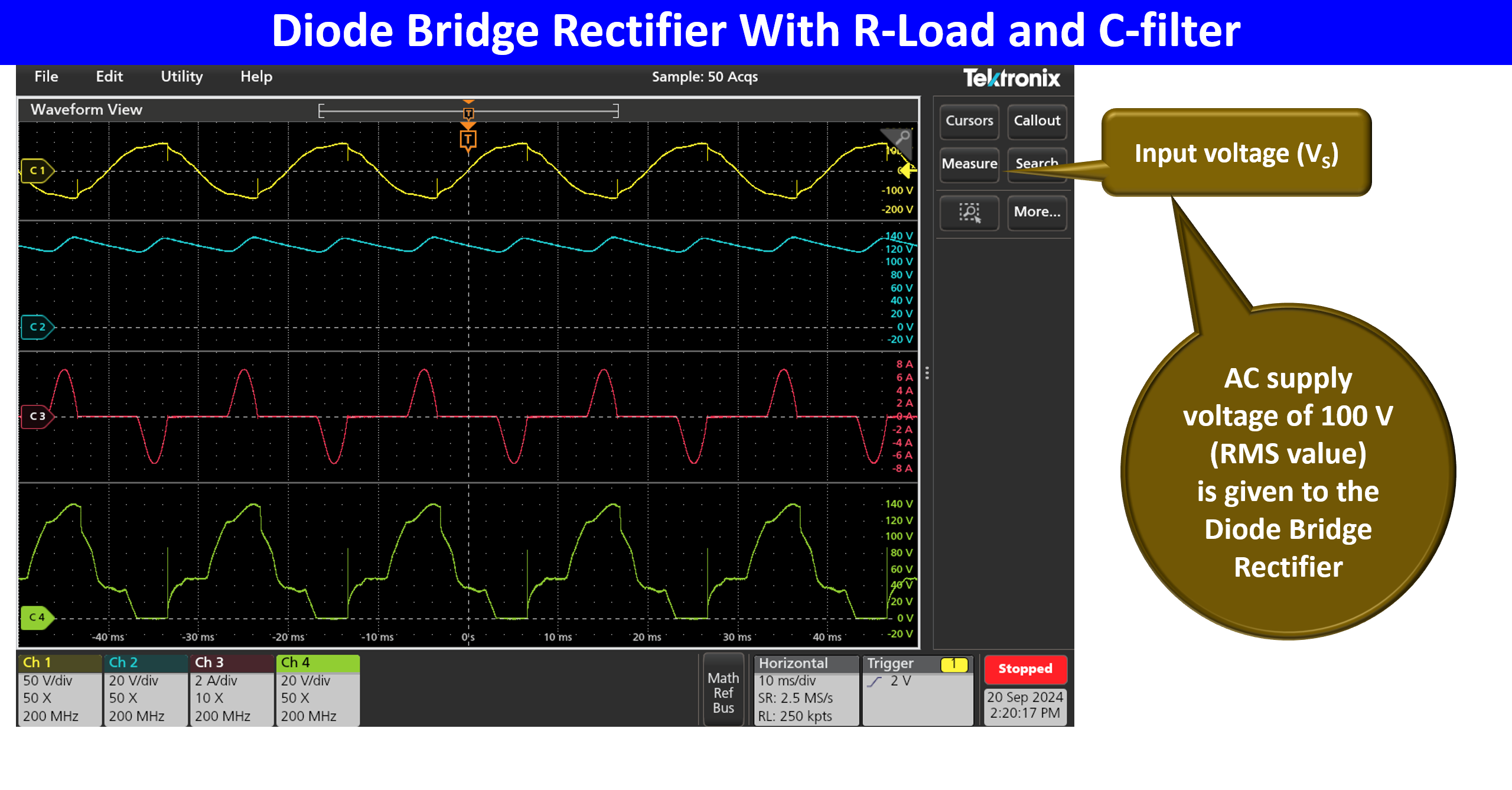 | S.No. | Vac(V) | V0(V) (Without filter) | I0(A) (Without filter) | Vr(pp) (Without filter) | P0(W) (Without filter) | VoF(V) (With filter) | IoF(A) (With filter) | Vr(pp)F (With filter) | PoF(W) (With filter) |